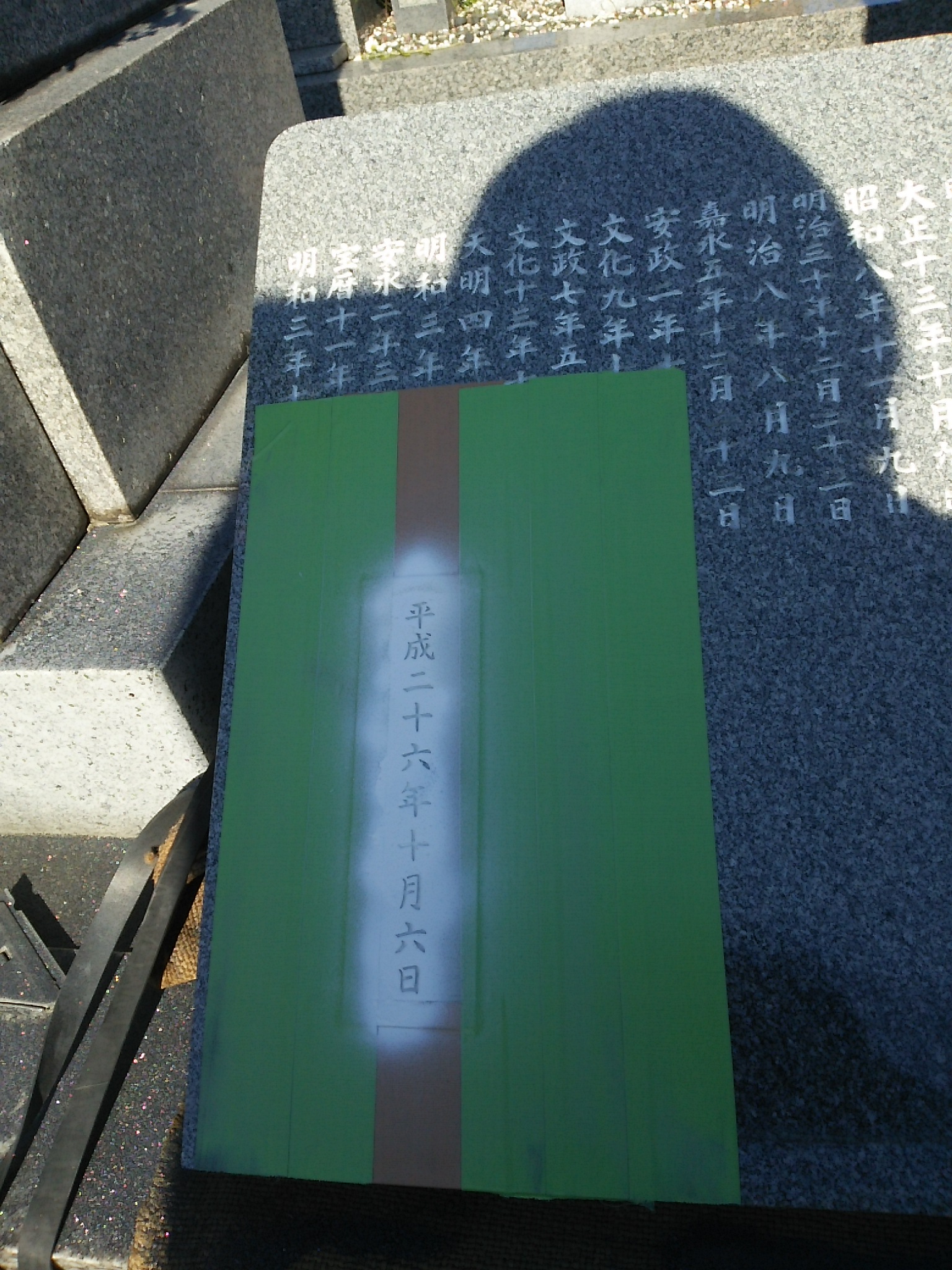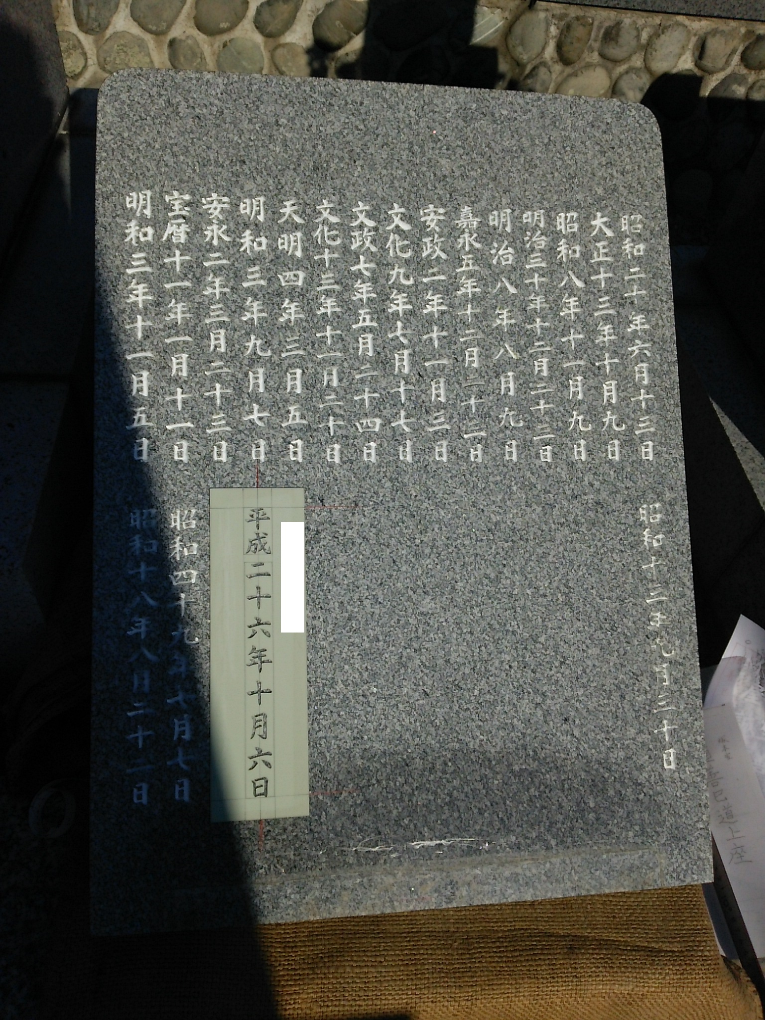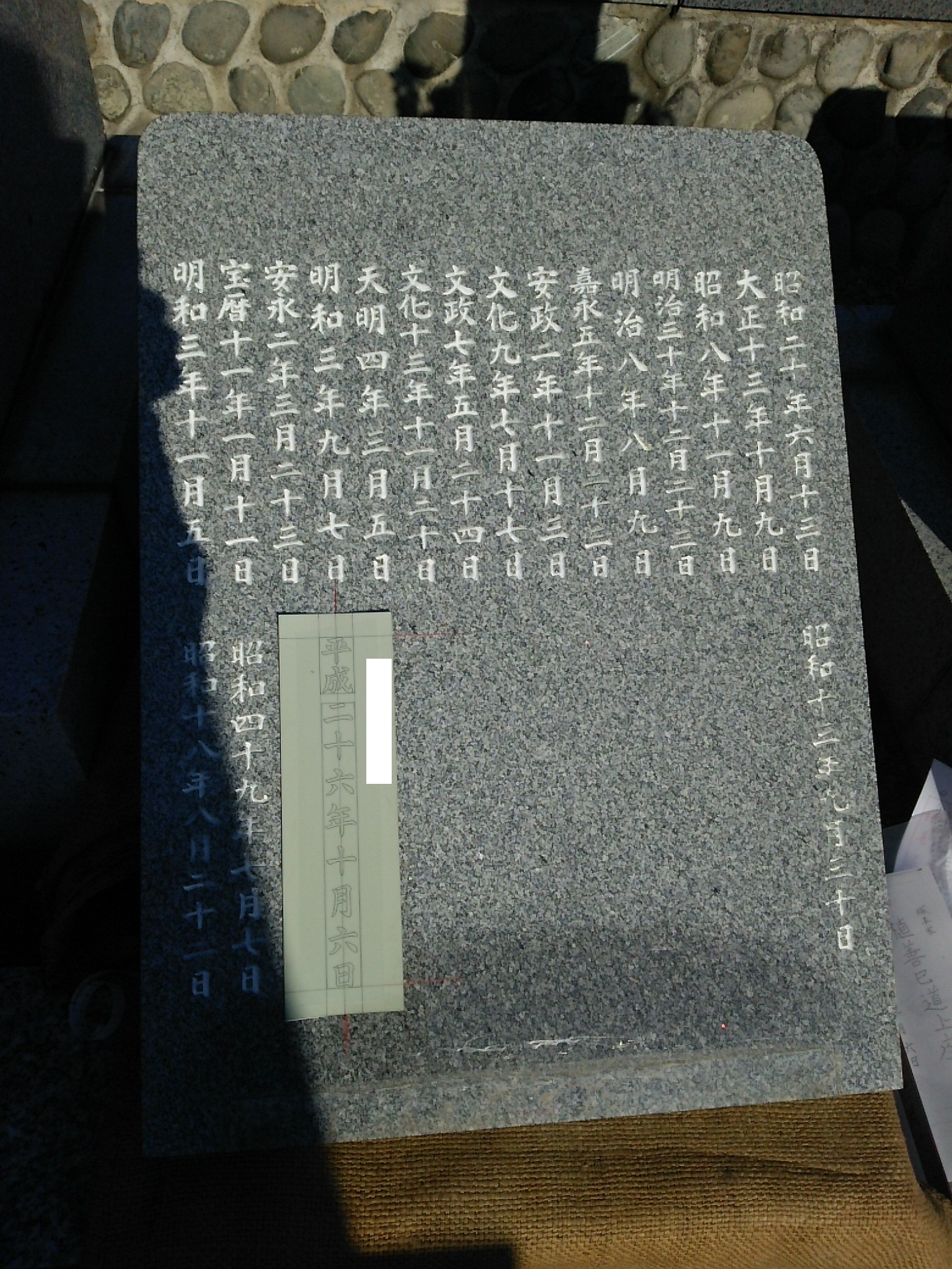 今回は墓誌板を外して彫刻をしたので、ちゃんと下駄をはかせ