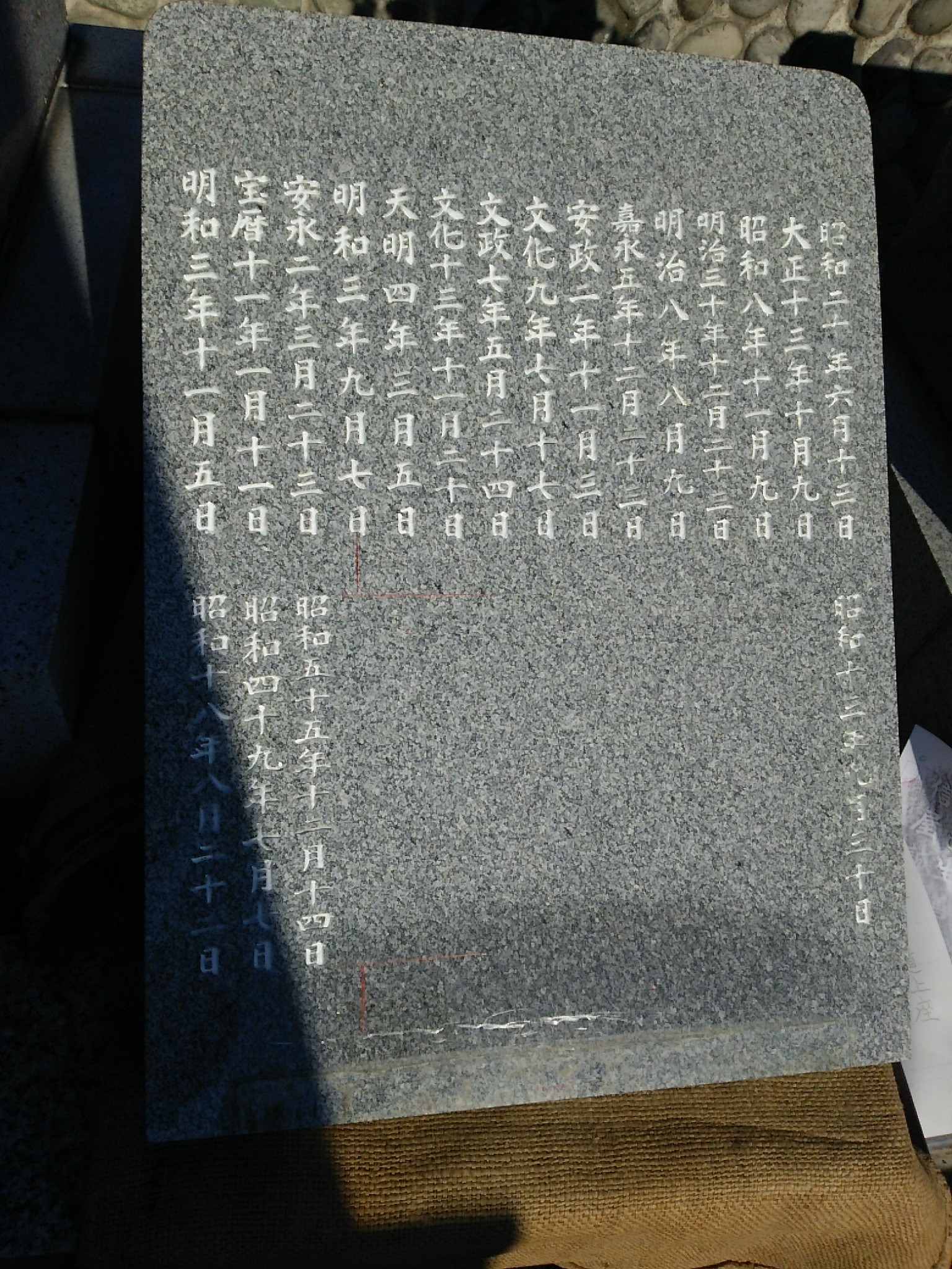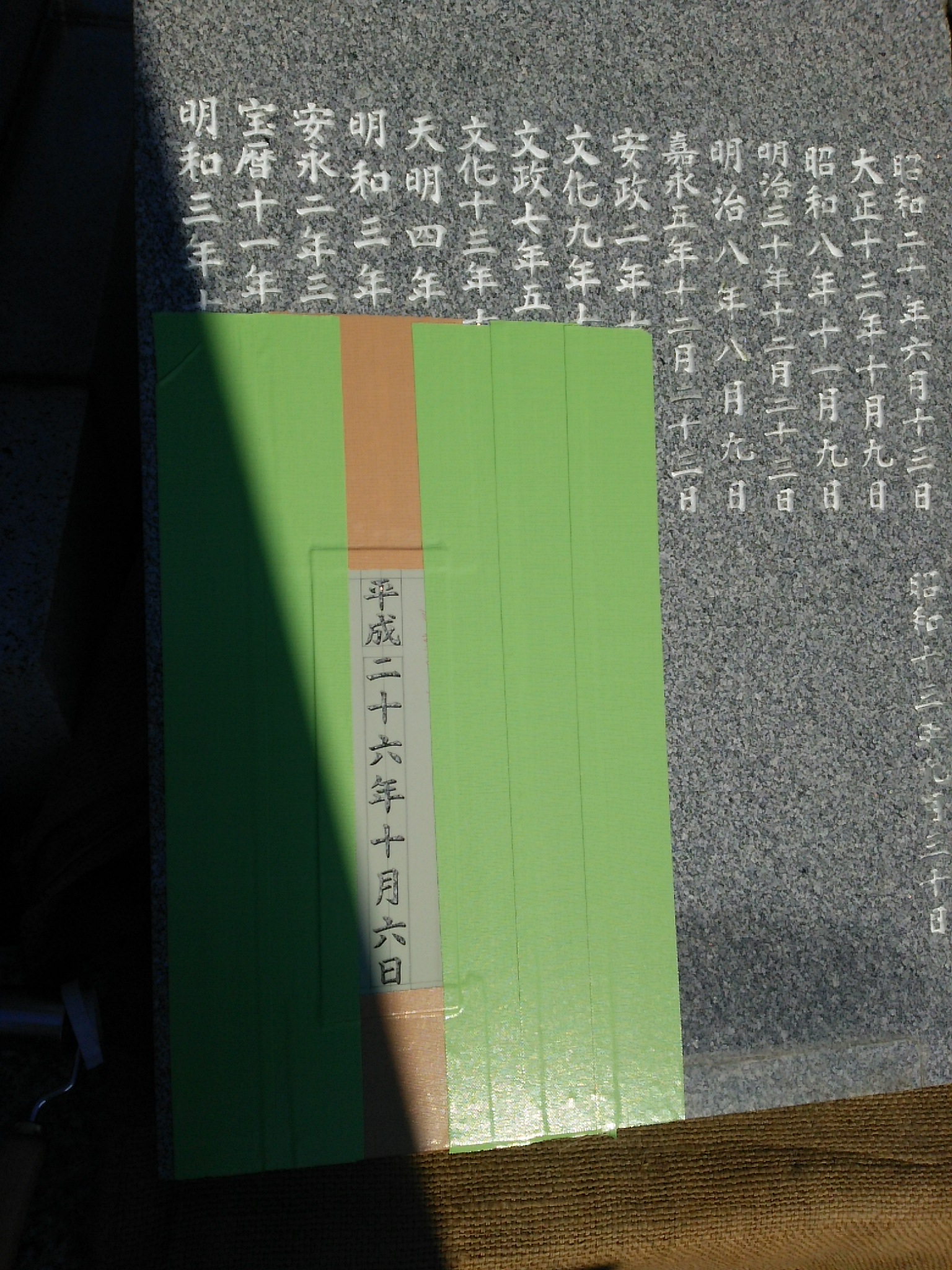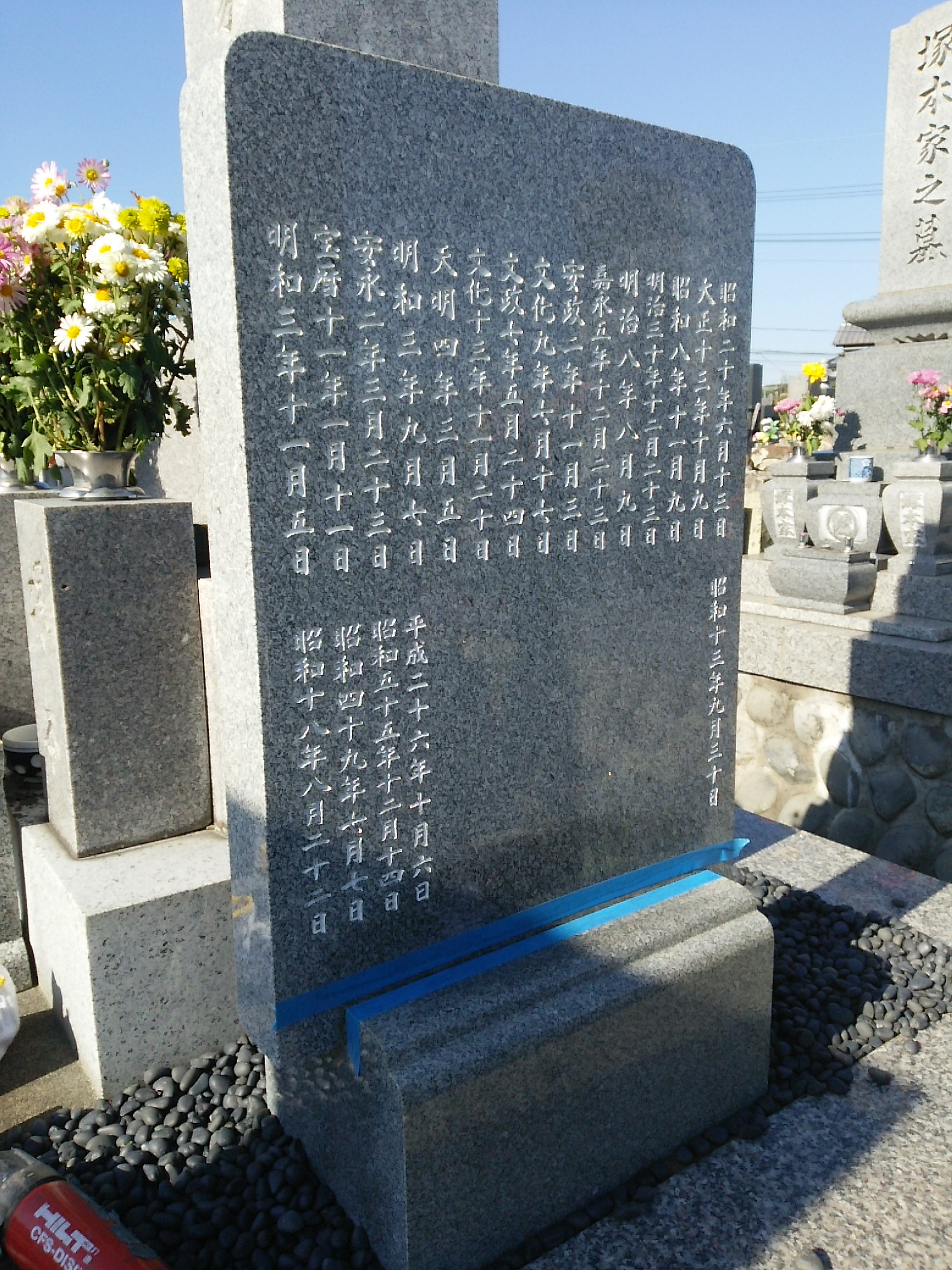 今回は墓誌板を外して彫刻をしたので、ちゃんと下駄をはかせ